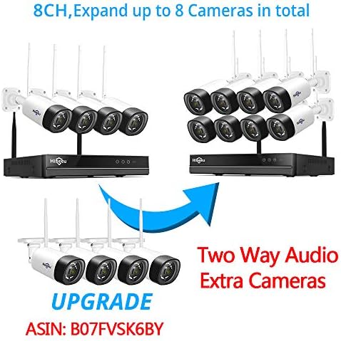 【Two Way Audio & 8 Channel System】This is 8Channel 3MP Network Video Recorder + 4Pcs 2K/3MP(2304 by 1296) IP66 Waterproof Two-Way Audio Security Camera System, Even on the other side of the globe, you can also hear and talk people in front of the camera through “Eseecloud” App.You can also add four more two way audio bullet cameras or PTZ Cameras(You can search: B07FVSK6BY / B081PRVDJ3 on amazon)Meet your needs to monitor more areas.Cameras and NVR are paired before shipping.
