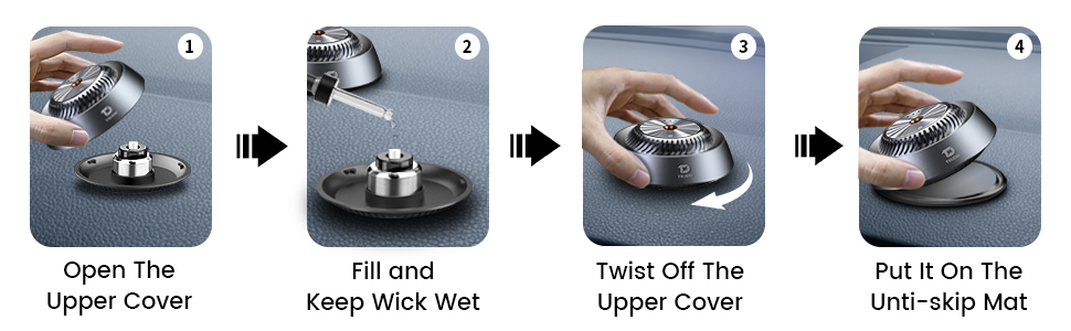 Long-Lasting Scent by Nano Atomization—-This car diffuser adopts macromolecule fragrance system integrated with an ultrasonic chip that will make the essential oil more volatilized and long-lasting.