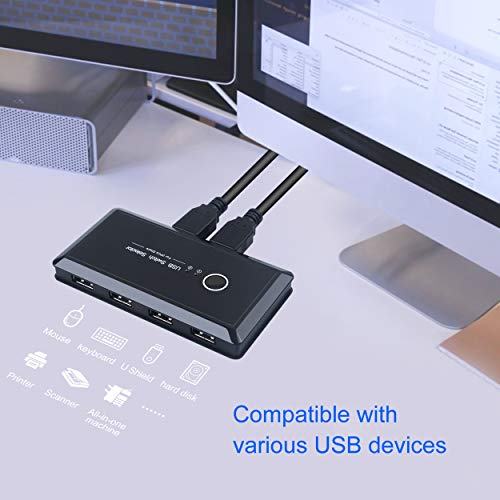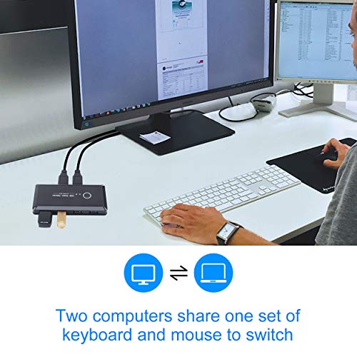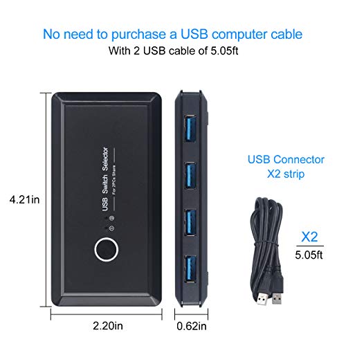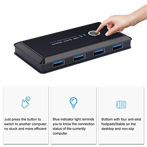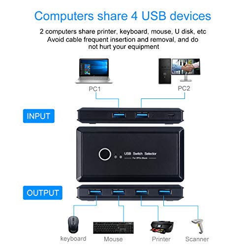 【 2 in 4 Out KVM Switches】USB Switch 3.0 Selector. share keyboard with two computers. allows 2 Computers to share 4 USB 3.0 peripheral devices, without the need to constantly swap cables or set up complicated networks sharing software. It’s great for use at home/office if you have multiple computers or Macs.