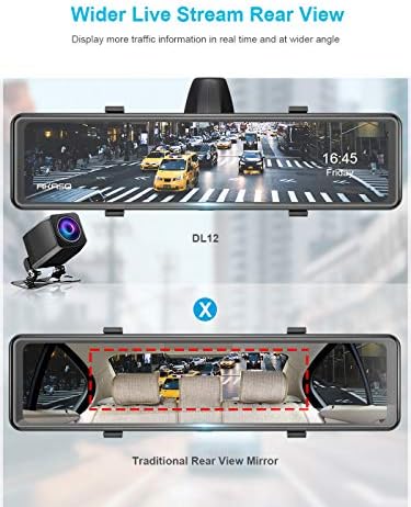 12″ Wider Live Stream Rear View: With latest 12″ IPS touch screen(Updated 11.5″ screen from Jun 2021), DL12 backup camera can provide more traffic information in real time and at wider angle than 10″ rear view mirror one, also easy for operation. The cord for rear camera is about 21.34ft, please contact our after-sale service team if this is not nough for your car.