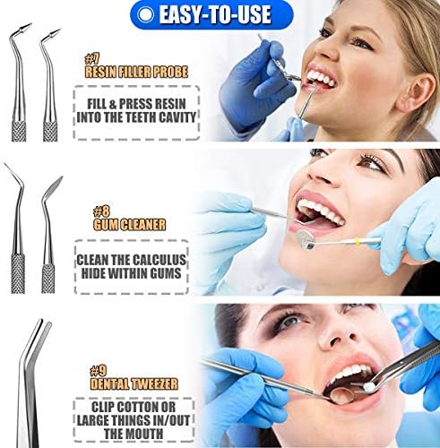 This dental tools set is designed by G.CATACC Pro Exclusive Team in California. Made of advanced sturdy stainless steel, rustproof & waterproof for years. Especially the upgraded carved handle ensure operating conveniently and precisely.