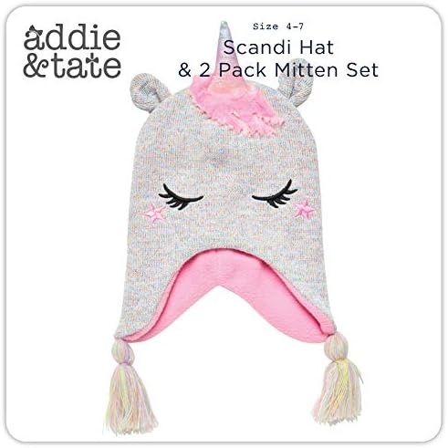 PREMIUM QUALITY: Laplander style girls winter hats and gloves or mittens set are made of a durable acrylic knit exterior and a soft micro-fleece inside lining for comfort and warmth. The toddler winter hat features fleece with embroidered character details and braided tassels on the side. 2 pairs of matching acrylic knit gloves or mittens complete this stylish critter set.