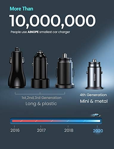 COMPACT SIZE: With tiny thumb-sized(Size: 1.7inch*0.9inch) body, it perfectly blends with most car cigarette lighter and sits comfortably with the edge of the outlet. Our smallest car charger yet; it´s portable and you can take everywhere.