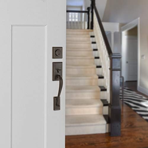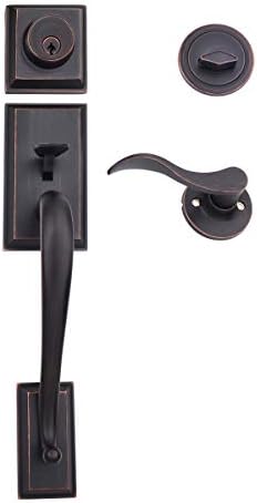 Amazon Basics Modern Exterior Door Handle with Right-Hand Wave Door Lever and Deadbolt Lock Set, Oil Rubbed Bronze