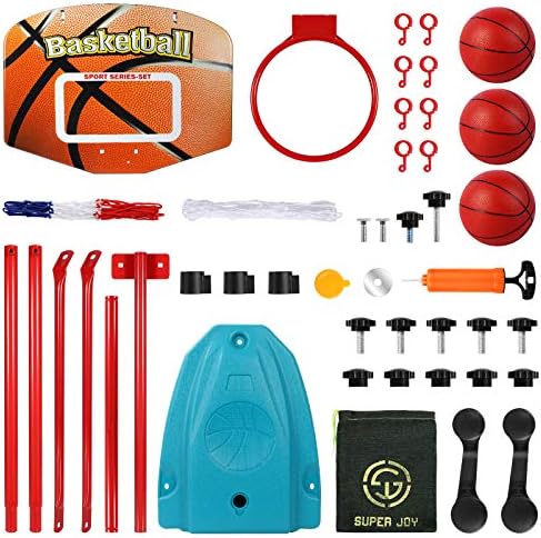 This kid’s basketball play set comes with a ball, a backboard, rim, 2 nylon net, pump, stand, base, and other necessary screws. Different from fellow sellers, we prepare 1 extra nylon net for little basketball player.