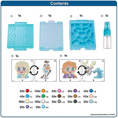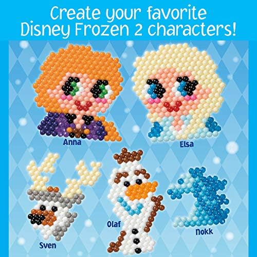 Design Anna, Elsa, Olaf and more of your favorite Disney Frozen 2 characters! This complete set contains over 1,000 jewel and solid beads in 17 colors, flip tray with bead palette, sprayer, two double sided template sheets & instructions. After crafting a bead design from the template, just spray your creations with water, no heat required! Flip the tray to remove the design, wipe dry and continue creating with Aquabeads! Suitable for children ages 4 and up.