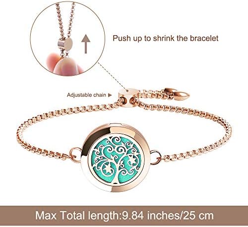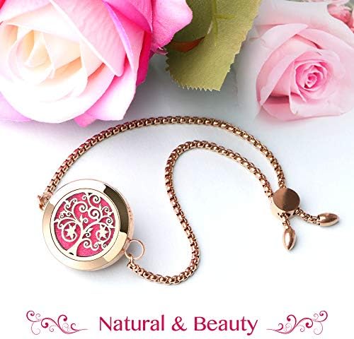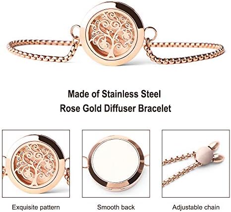 🎄『Beautiful Design』The diffuser bracelet adopt the Circular Carving Design make it look retro and elegant. The tree of hope pattern carved on the dial of the bracelet has profound meaning. Rose color added to it a fashion and High-end color. The exquisite craft and the blessing it represents make it suitable for all ages as a gift.