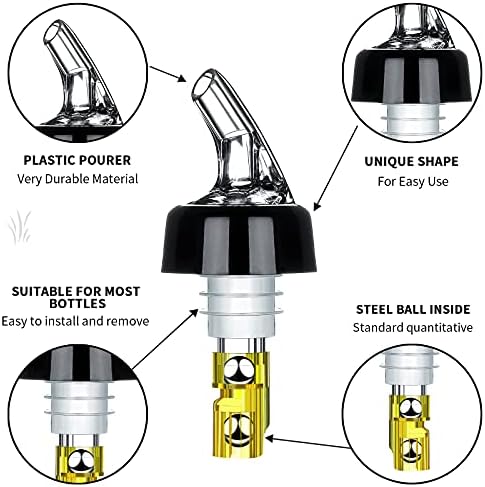 ★Can be fitted on standard 750 ml liquor bottles. Also can be used with juice, syrups, and oils. Note: inaccurate pourers will occur when used with water.
