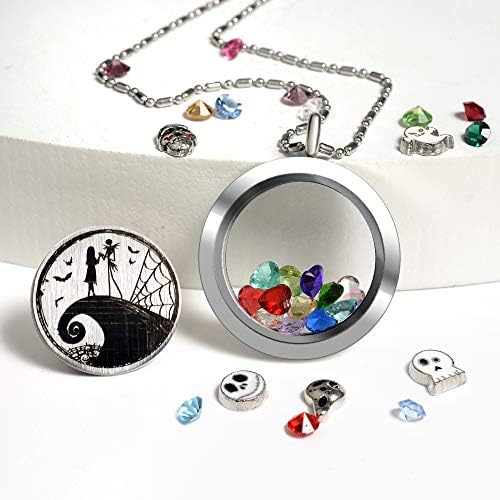 This Halloween Monster floating charms necklace is full of Halloween fun! design originates from the main characters of the film The Nightmare Before Christmas – Jack Skellington and Sally, also known as the “Pumpkin King”, is gifts a best choice for Halloween. When Receiving The Package You Can Choose Different Charm or Crystal Birthstone Combination Only Belongs to Your Favorite. It Has Very Interesting The Combination is Waiting for You to Discover. Start Making Floating Locket Necklace That Belongs to You Immediately.