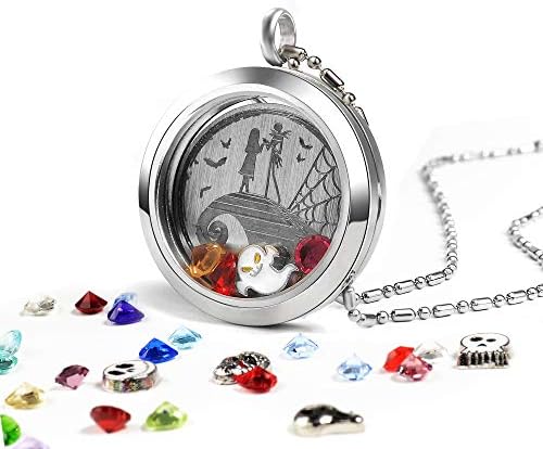 【Material Quality】:This Halloween Floating locket Necklaces and Chain is made of surgical 316L stainless steel, high-polished, stronger and more durable, will never fade, never rust, never tarnish, corrode, stain, hypoallergenic and Nickel-free, Lead-free, Cadmium-free and Anallergic.