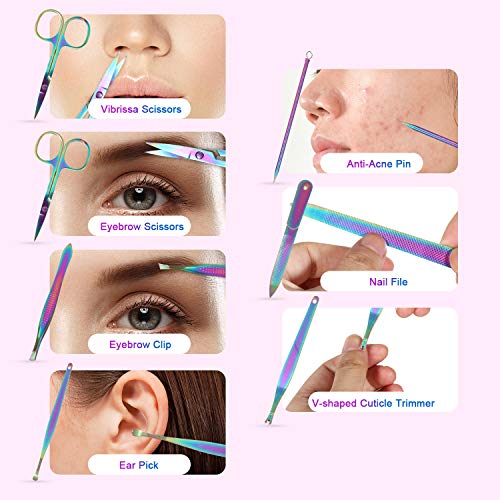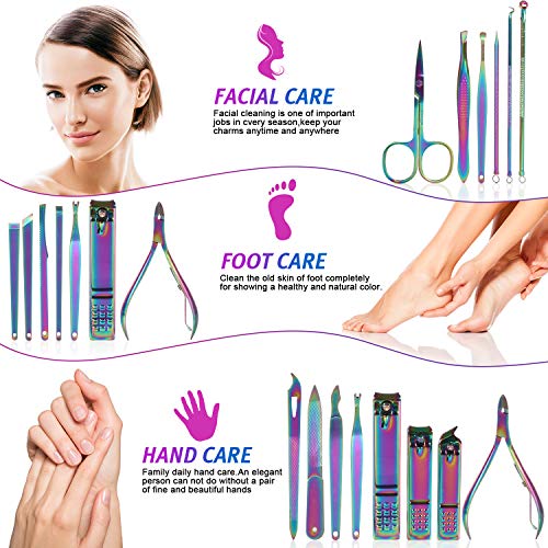 Color Appearance: The end of the fashion style of the manicure set is upgraded from the inside out. The appearance made of PU leather looks very beautiful and full of youth. The rainbow version of the leather lining has a strong texture and the internal stitches are very neat and artistic. Sense, all tools use hot-dip technology, not only exquisite, luxurious, and unique and bright appearance, you will love it at first sight