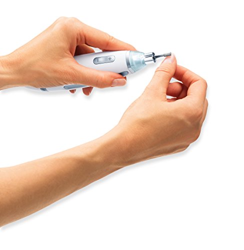 INTEGRATED LED LIGHT: The LED light feature highlights & brightens view during use, achieving a precise nail file. Includes a dust shield, for safe & clean use at home. This shield controls the dust.