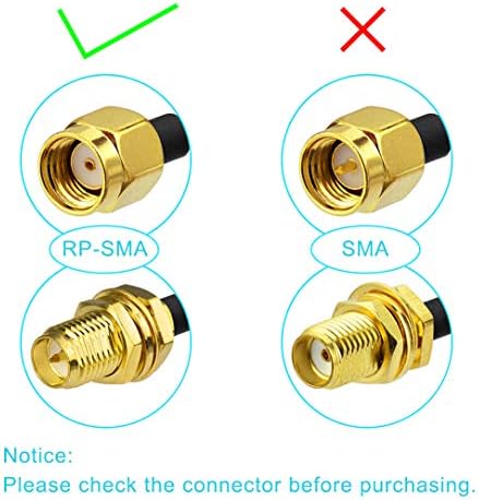 Connector: RP-SMA Female Bulkhead Mount 50 Ohm Connector; Connector: RP-SMA Male 50 Ohm Connector; Cable: RG174 Coaxial Cable; Length: 3m / 10 feet;