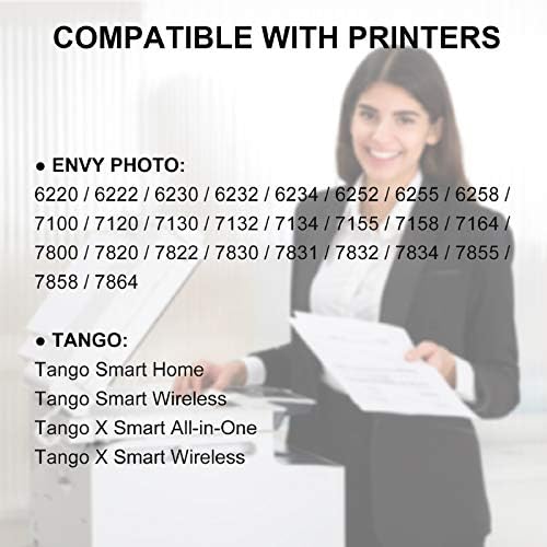 Fit for following HP printer model: Envy Photo 6220 , 6222 , 6230 , 6232 , 6234 , 6252 , 6255 , 6258 , 7120 , 7130 , 7132 , 7134 , 7155 , 7158 , 7164 , 7800 , 7820 , 7822 , 7830 , 7855 , 7858 , 7864 ; Tango Smart Home , Tango Smart Wireless , Tango X Smart All-in-One , Tango X Smart Wireless , Tango Terra