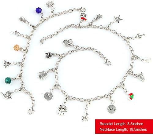 Celebrate the joys of the season with this Christmas charm, bracelet and necklace set. Featuring18pcs Xmas pendant , 4pcs beads to add to your necklace or bracelet, this set exudes holiday cheer.