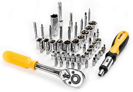 INCLUDES:Comprehensive assortment of professional-grade wrenches, ratchets, a complete range of 1/4 inch and 3/8inch metric-sized sockets and precision screwdriver, hammer, tape measure, pliers, wrench,and etc. The 72-tooth ratchet easily shift to change direction by flick of 5-degree switch.Variety of 1/4-inch screwdriver bits: Phillips, slotted, square, star and pozi.Also includes soft-grip handle on screwdriver, plier, srtipper and hammer provides excellent comfort and control