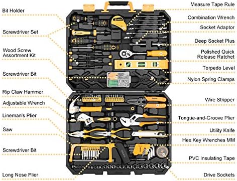 COMPLETE VARIETIES:Contains tools needed for most small repairs and basic DIY projects around the house.Perfect for Handyman’s, repairmen, construction workers, mechanics, body shops etc. also a great tool set to have at home, garage and the workshop