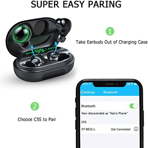one step pairing: pick up 2 earbuds from charging box they will connect each other automatically, then only one step easily enter mobile phone bluetooth setting to pair the earbuds.