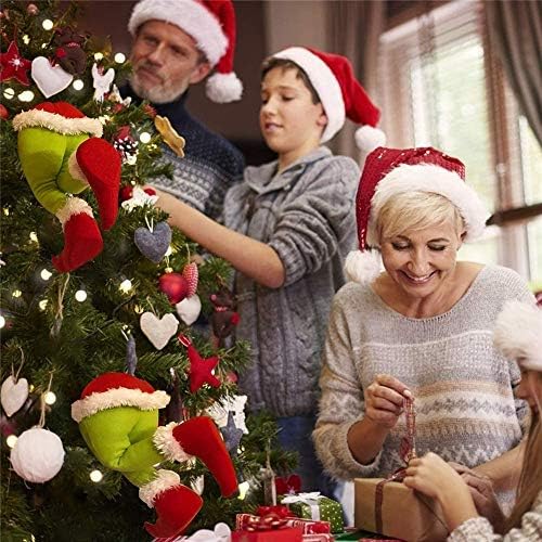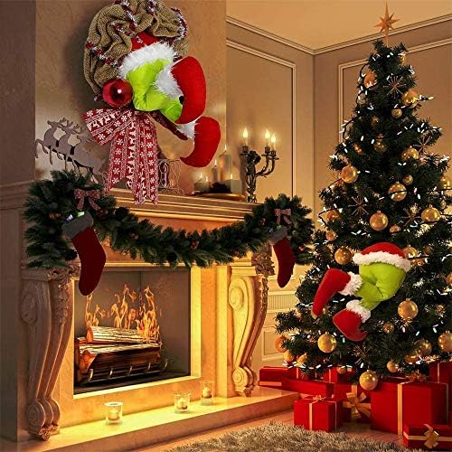 With accents of red and white glitter Christmas ornaments, you can tell It is up to no good – and stealing Christmas – right on your front door! His plush legs are pose-able, so you can create your own