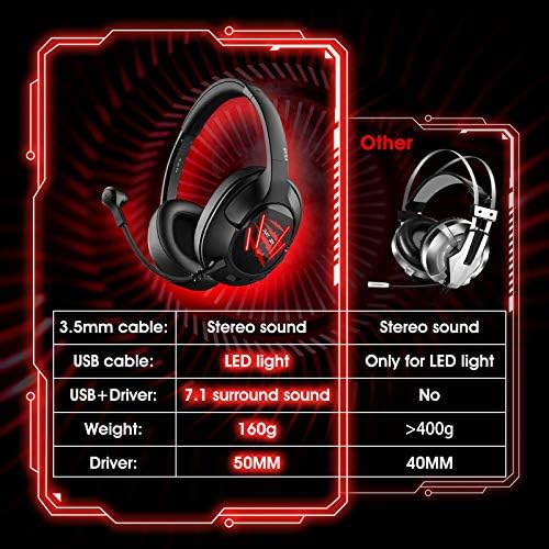 【Cool LED light】Delicate red RGB lights are designed on the earmuffs to highlight the atmosphere of the game. It is different from traditional game headsets, its exquisite and stylish appearance makes your games not limited to indoors. You can use this headphones in cafes, offices, subways, etc. These gaming headphones allow you to enjoy games and music anytime, anywhere.