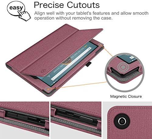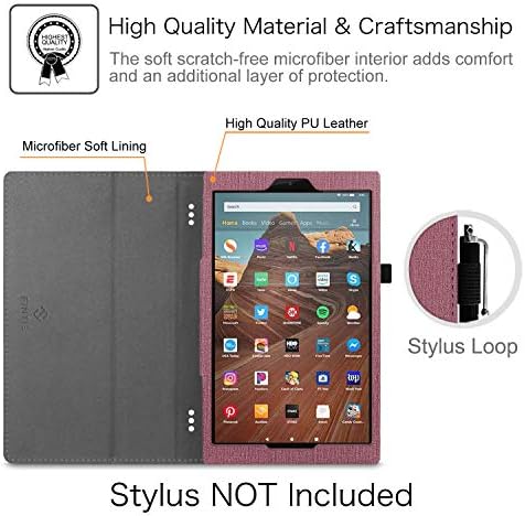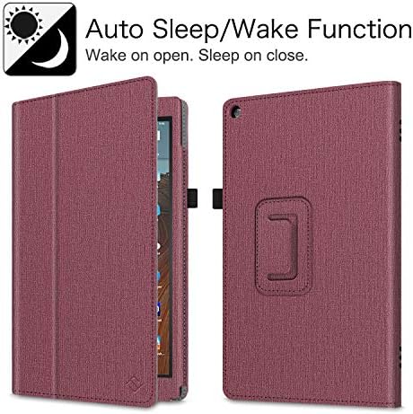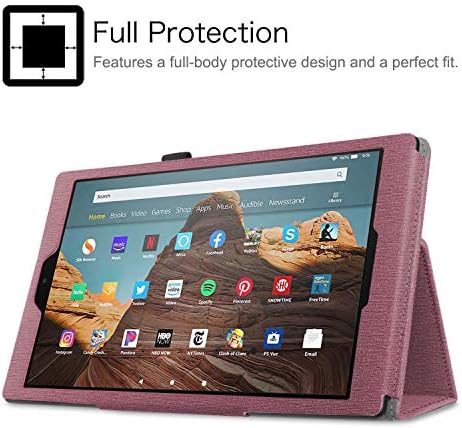 The Fintie Folio case perfectly fits your Fire HD 10 tablet! It sports a simple and classy design made from premium synthetic leather, and the interior is lined with soft microfiber material that protects your tablet from prints, dirt and scratches. A smart holder is designed to hold your stylus pen. Because the cover is uniquely designed to flip back and transform the case into a viewing stand or keyboard stand, this capability allows the viewer to use the tablet hands-free when watching. It offers an ideal way to protect your tablet wherever you go.