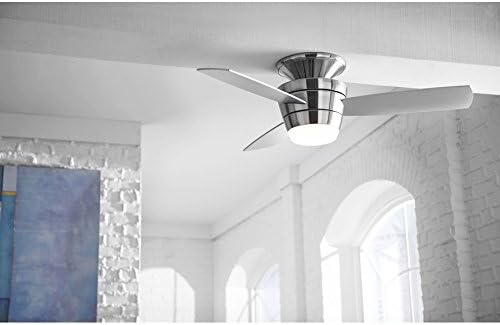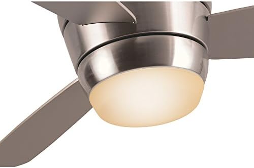 Specifications Collection Name: Mazon Fan Diameter (Inches): 44 Downrod Length (Inches): 0 Number of Blades: 3 Reversible Blades: No Blade Finish: Silver Light Kit: Included Number of Bulbs Required: 0 Number of Lights: 1 Light Bulb Base Type: No base Recommended Light Bulb Shape: N/A Maximum Bulb Wattage: 18 Bulb Type: N/A Remote Control Included: Yes High Speed Airflow (CFM): 4545 High Speed Electricity Use (Watts): 58 Mounting Options: Flush mount Motor Speeds: 3 Reverse Air Flow: Yes Works with Iris: No Motor Type: AC Angle Mount Capable: No Manufacturer Color/Finish: Brush Nickel Dual Fan Heads: No Wattage Equivalent: 120 UL Safety Listing: Yes CSA Safety Listing: No ETL Safety Listing: No Remote Control: Handheld Theme: N/A Package Quantity: 1 Type: Standard Light Kit Type: Integrated Commercial/Residential: Residential ENERGY STAR Certified: No Maximum Height (Inches): 12 Minimum Height (Inches): 12 Fixture Finish: Brushed Style: Contemporary/Modern Shade Material: Glass Indoor/Outdoor: Indoor Bulb Installation Type: Integrated LED Glass Type: N/A Outdoor Usage Rating: N/A Fixture Color Family: Nickel Suggested Room Size: Small Room (up to 100 sq. ft.) Frosted Glass: Yes