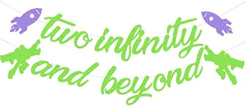 Two Infinity and Beyond Buzz Banner Light year Toy Inspired Story 2nd Birthday Party Supplies Decorations Photo Prop for Girl Baby Bday