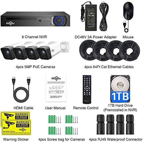 8CH 5MP POE CAMERA SYSTEM: Video, Audio, and Power Carried By A Single Ethernet Cable(60ft Provided). Allows You Setup Your Home Security Camera System Easily. No Signal Issue Nor Wiring Hassles. (Extra Cameras ASIN: B07N7BWR1V)