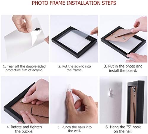✔ MULTIPLE DISPLAY & WELL MADE: Comes with 12pcs picture frames in different size, made of black finished plastic and acrylic for long lasting. The acrylic front is clear, designed to protect your photo frames from smashing.【Note】: Please peel off the PROTECTIVE COVERING both sides on the acrylic front, which gives a clear view of your picture and preserves the life of your photo.
