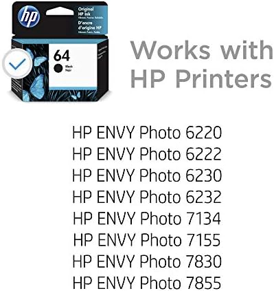 HP 64 | Ink Cartridge | Black | Works with HP ENVY Photo 6200 Series, 7100 Series, 7800 Series, HP Tango and HP Tango X | N9J90AN