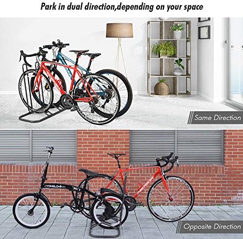 Dual Purposes: This bike floor stand can be custom assembled in the same direction or opposite direction for parking your bicycles indoor or outdoor. Adjustable dual purposes parking rack, park in dual direction, depending on your space.