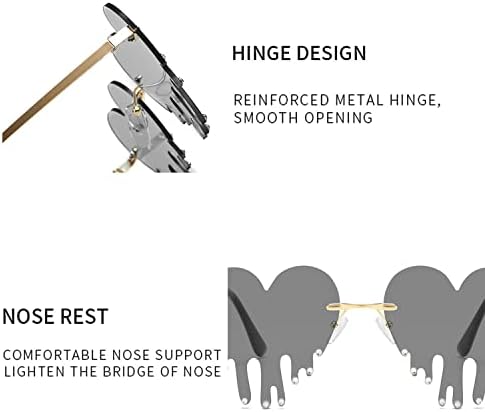 【PROTECT YOUR EYES |HEART SUNGLASSES】- The lenses of rimless sunglasses can block 100% of both UVA and UVB radiation. UV400 rated sunglasses is essential to protecting your eyes against long term UV damage and keeping your eyes healthy when you go out.