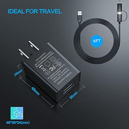 [2 in 1 Replacement Charger Kit] Packaged with 10W charger adapter and 6ft long cord, it can simultaneously charges Micro-USB and USB Type-C powered devices.