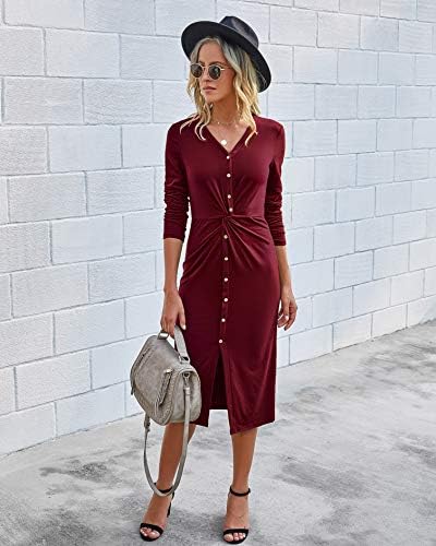 The twist knot waist seam at the front, which emphasizes your feminine silhouette, is very advantageous. This loose-fitting, body-sculpting dress keeps a cool style on the weekend without sacrificing femininity. It has a long sleeves, solid color, over-the-knee length, a V-neck snap, pullover and button front detail design that can display your curves and make a turning head. The button is used for decoration and cannot be opened.