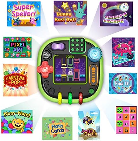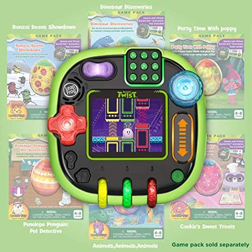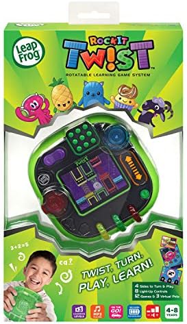 Twist, turn, play and learn with the RockIt Twist rotatable, single-player game system with three profiles! Four sides of colorful, light-up controls include buttons, dials, a spinner, slider, switch and D-pad to provide a totally unique way to play exciting video games. During game play, one of the eight game controls will light up to indicate when each control is needed throughout a game. Nurture three adorable virtual RockIt Pets that hatch and grow from eggs. 12 preloaded games across five game play categories have three levels of difficulty that help kids learn skills including literacy, math, problem-solving and creativity all while having fun! Since there’s no need for Wi-Fi, kids can play anywhere. Listen to your own music with the built-in MP3 player. Volume controls and headphone jack are also included. Game packs (sold separately) include more games, plus a new RockIt Pets virtual pet and a RockIt Pets figure to match. For ages 4-8 years. Rechargeable batteries included.