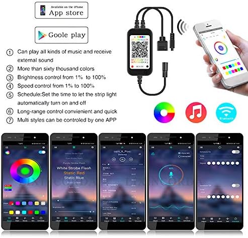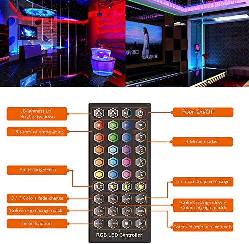 【Remote control and APP control】:This color-changing led light with Bluetooth can be controlled by 44 keys remotely and smart APP. Provide 16 million colors for you to choose from through APP Color Platte to create romance, relaxation, party atmosphere and festive atmosphere for your home.
