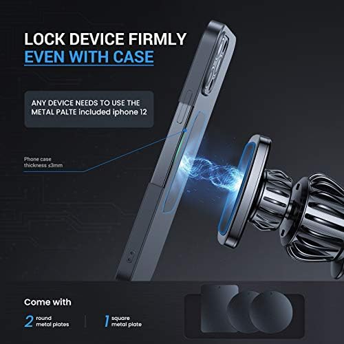 👍LOCK YOUR PHONE FIRMLY: LISEN Magnetic Phone Car Mount with 6 built-in strong magnets, the maximum bearing up to weight of 4 cellphones. Powerful suction keep your cellphone stay stably even when drive on a bumpy road. PLEASE NOTE:1. It is recommend that use the “square pad” on the back of your phone/case. It is more stable than the round. 2. ANY DEVICE NEEDS TO USE THE METAL PALTE EVEN IPHONE 12.