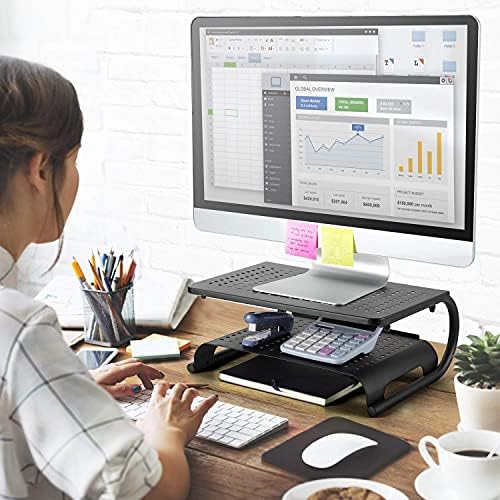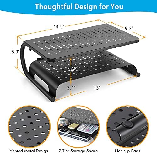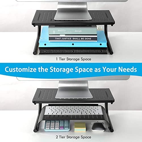 SAVE SPACE – With 2 tier organizer, this monitor stand will easily store your office accessories & supplies under the monitor to get a clean desktop. You’ll notice a change: work more efficiently