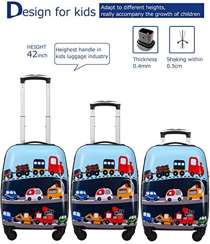 【✩✩ Limited Quantity, Now new products are in Promotion ✩✩】【Top Quality Kids Luggage】Made of brand new extra-thick high quality and non-toxic ABS+PC materials for hardshell, which make the luggage more durable, lighter and impact-resistant. New Anti-Scratch version to prevent against scratches, keeping cases beautiful after their trip.