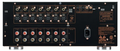 Designed for the ultimate music and movie surround sound experience, the 7-channel MM8077 power amplifier delivers power and detail, and is rated at 150 watts per channel into 8 ohms, and 180 watts per channel into 6 ohms. The power supply features a high current toroidal power transformer along with high power filter capacitors that provide substantial headroom for dynamic peaks along with the ability to handle lower impedance speaker loads. All output stages feature identical topology for uniform high-quality sound across all channels, and the MM8077 lets you choose between balanced (XLR) and unbalanced (RCA) inputs for each channel, for maximum system configuration flexibility. The amp is equipped with multiple high current, high bandwidth discrete power transistors with a high slew rate, which extracts the most detail from today’s high-resolution audio formats. Pair the MM8077 with MM7705 5-channel power amplifier to enjoy thrilling 11 channel surround sound with the latest multi-channel audio formats, such as DTS Neo:X. For easy control, the MM8077 features remote power on/off control compatibility with select Marantz A/V pre-amplifiers, such as AV8801.