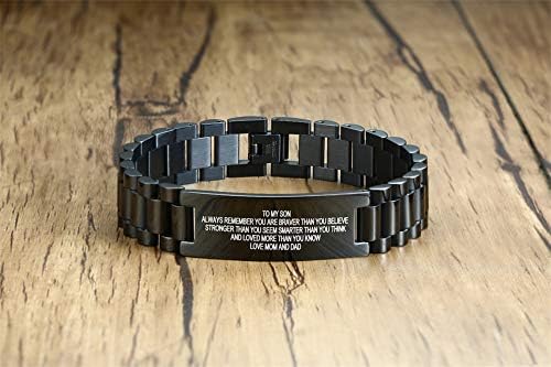 This is an inspirational bracelets Engraved an inspirational message for an instant confidence boost, show your love through words of encouragement, A perfect Graduation,Birthday,Christmas gift to your son from Mom or Dad.
