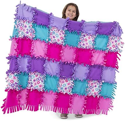 FUZZY NO-SEW QUILT SET: The Melissa & Doug Created by Me Flower Fleece Quilt is a knot-together, no-sew fleece quilt craft kit featuring flower patterns and coordinating colors.