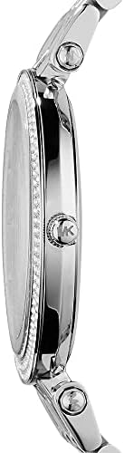 This Michael Kors Women’s Darci timepiece features a classic dial set on a sparkling pavé case. A polished steel bracelet completes the look.