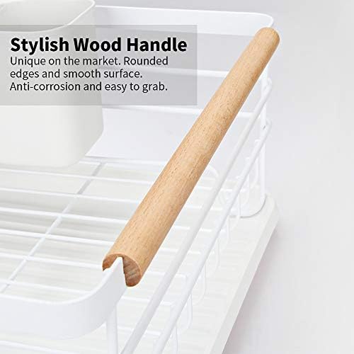 Tackle your big cleanup tasks with ease using the Attom Tech Home Modern Design Wood Handle Dish Rack with Drain Board