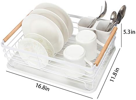 🍽️ Overall dimensions: W 16.8″ / D 11.8″ / H 5.3″. Fits in most sinks and can hold any variety of plates, bowls, dishes, utensils or glasses that need drying. Comes with a durable resin tray to catch excess water. Can be hung on the wall or placed on the countertop.