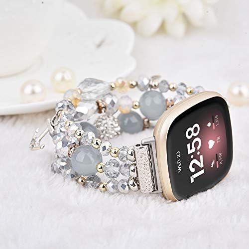 【UNIQUE STYLISH for Fitbit Versa 3/Fitbit Sense BAND】 Made of high quality natural stone, beaded pearls and colorful crystals, slowly polished by the experienced artificers, unique stylish, smooth, comfortable, beautiful colors, feminine and elegant looking, increase your beauty, enjoy your life.