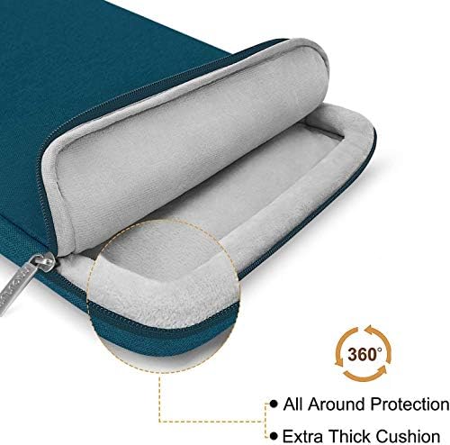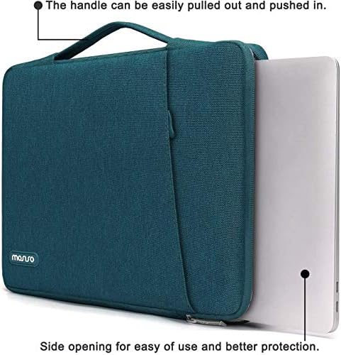 The 360 degree protective shockproof vertical laptop sleeve with handle & bevel pocket carrying bag is made of water repellent polyester material, protect your laptop against accidental spills. Slim and lightweight, does not bulk your device up and can easily slide into your briefcase, backpack or other bag. Ideal for business, school or travel.