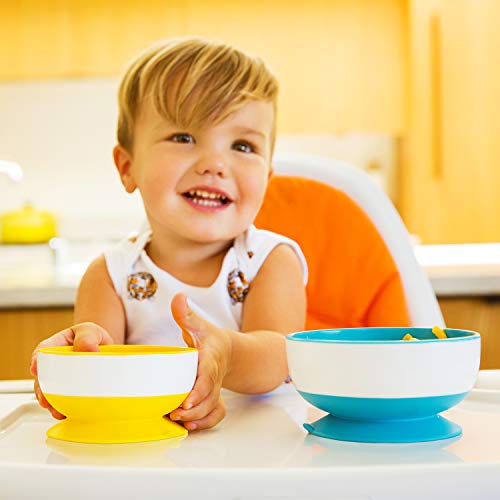 Let’s face it. Toddlers can get a little rambunctious at dinner time (make that all the time). But you no longer have to duck for cover from a flying bowl of macaroni and cheese. Minimize unnecessary messes with our convenient three pack of Munchkin Stay Put Suction Bowls. The strong suction base will adhere to most surfaces, and the quick release tab makes removal easy for adults. Microwave and top rack dishwasher safe, food prep and clean up is easy and quick, too. Now if only you could keep your toddler in place so easily.