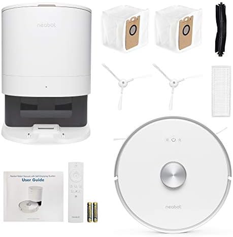 1x Neabot Robot Vacuum,1x Neabot Self-Emptying Dustbin, 2× Side Brush, 1x HEPA Filter, 2× Dust Bag, 1x Remote Control, 1x User Guide, 2× Battery AAA (For Remote Control)