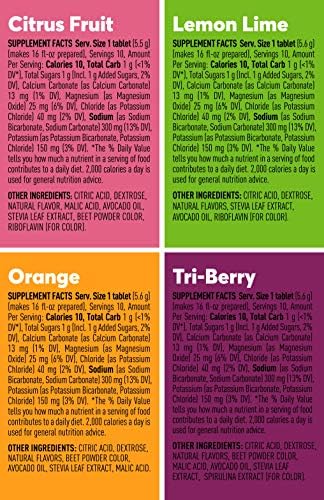 Contains one tube of each flavor: Lemon Lime, Tri-Berry, Citrus Fruit, and Orange. Four tubes and 40 servings total.